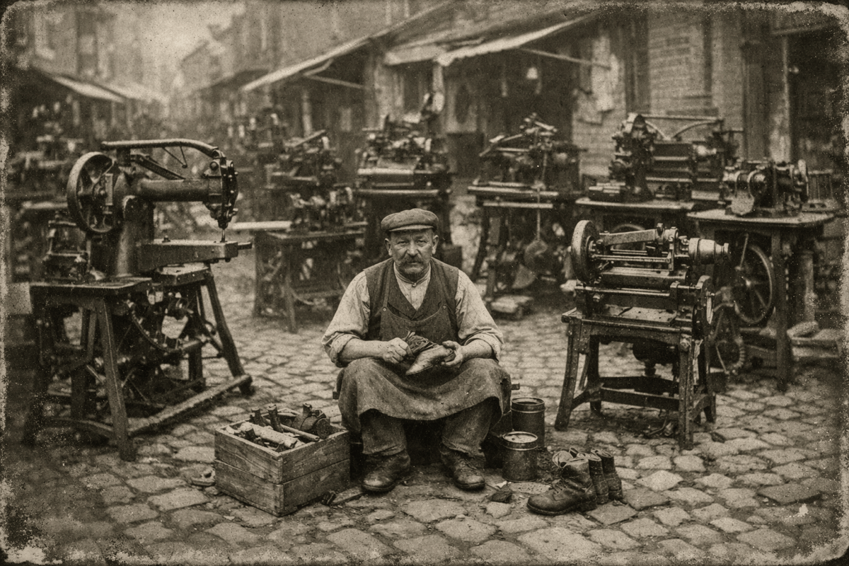 Историята на обущарите през XIX век и паралелите със съвременната AI революция в програмирането – разказ за технологични трансформации, човешка съпротива, адаптация и устояване на занаятите в ерата на машините.